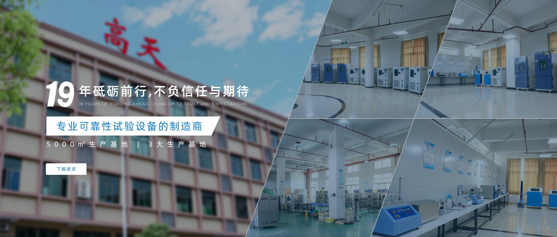 東莞市高天試驗設(shè)備有限公司是一家可靠性試驗設(shè)備的制造商,我們專注于可靠性試驗已有19余年,在此期間,我們竭盡所能,努力為客戶提供完善的實驗室規(guī)劃方案,匹配質(zhì)優(yōu)價廉的試驗設(shè)備。高天擁有完整的研發(fā)團隊,其中有很多人都躋身試驗設(shè)備行業(yè)多年,能為顧客提供完善的技術(shù)方案,以幫助廣大客戶在確保其產(chǎn)品品質(zhì)的前提下,有效降低經(jīng)營成本,提升經(jīng)營競爭優(yōu)勢。高天生產(chǎn)的設(shè)備種類眾多,同時擁有實用新型專利證書,銷售范圍覆蓋全國。公司自成立以來堅決以精美的外觀設(shè)計,認真務(wù)實的工作精神,良好周到的后續(xù)服務(wù),贏得了客戶良好的口碑。我們將一如既往,堅持以“誠信經(jīng)營”為...